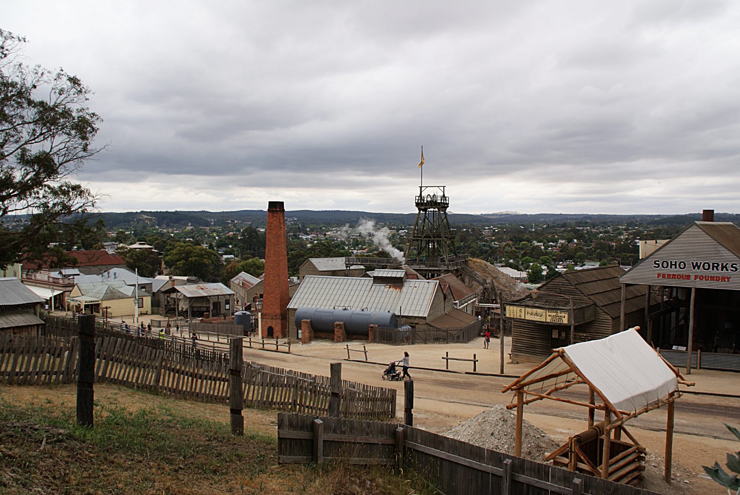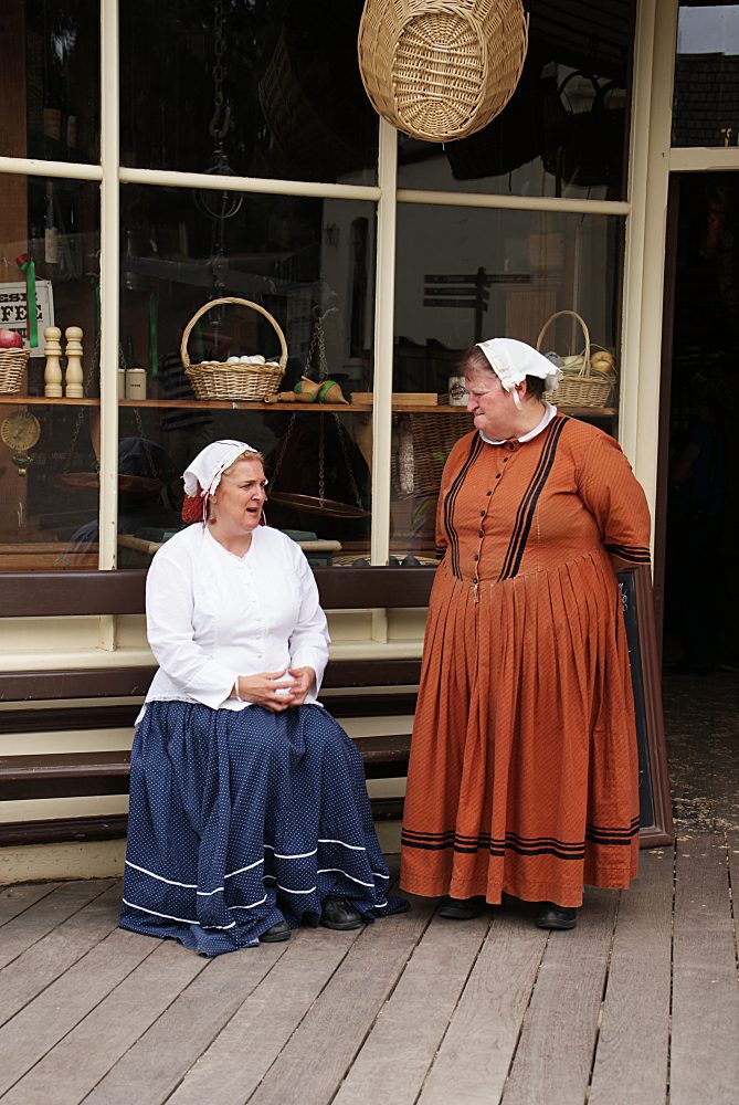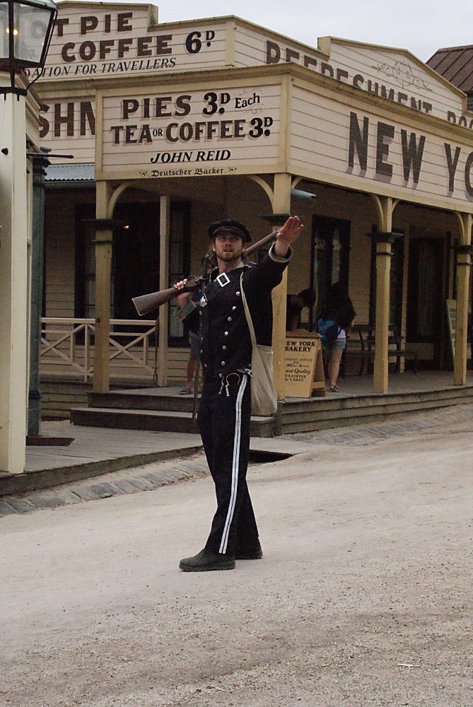 Wo früher nach Gold gegraben und im Jahr 1851 auch welches entdeckt wurde, befindet sich heute ein Freilichtmuseum über den Alltag in dieser Zeit. Angeboten werden allerlei Vorführungen (zB Goldgießerei, Herstellung von Süßigkeiten, Kerzenziehen) und Touren unter die Erde. Ich habe sowohl an der Red Hill Mine Tour (gratis) als auch an der Labyrinth of Gold-Tour (kostet extra) teilgenommen. Bei der Red Hill Minentour erkundet man auf eigene Faust und zu Fuß die unterirdischen Gänge, aber keine Sorge – man kann sich nicht verirren und wird von einer Stimme begleitet. Bei der Labyrinth of Gold-Tour geht’s gemeinsam mit einem Guide zum Teil auf einem Hunt (Förderwagen), zum Teil zu Fuß durch das Labyrinth und erfährt man dabei so manches über die Arbeit eines Goldgräbers. Aber auch überirdisch tut sich einiges: die Dampfmaschinen sind noch in Betrieb, bei der Bäckerei kann eine kleine Stärkung gekauft werden und wer müde ist, kann eine Kutschenfahrt buchen. Was wäre aber ein Dorf ohne Kirche, Wirtshaus, Feuerwehr und Bestattungsunternehmen? Nichts. Also dürfen diese Einrichtungen natürlich auch nicht in einer Goldgräberstadt fehlen. Und wer mag, kann sich auch im Goldwaschen versuchen.