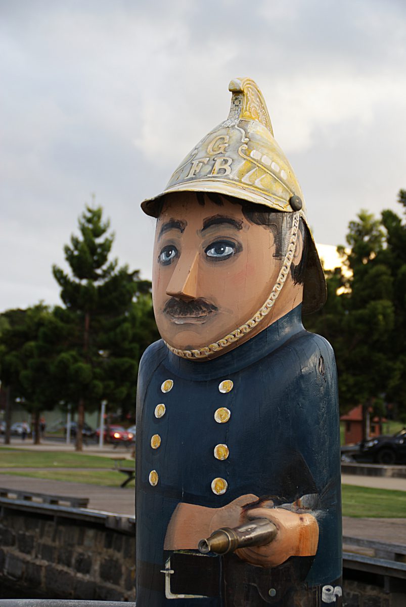 Wir hatten leider nicht soviel Zeit und außerdem plagte uns ziemlich der Jetlag, sodass wir uns auf den doch noch etwas längeren Weg zu unserer Unterkunft in Apollo Bay machten. Für eine kleine Pause hielten wir an der Waterfront von Geelong, wo unter anderem zahlreiche bemalte Holzfiguren und ein Dampfkarussell zu sehen sind.