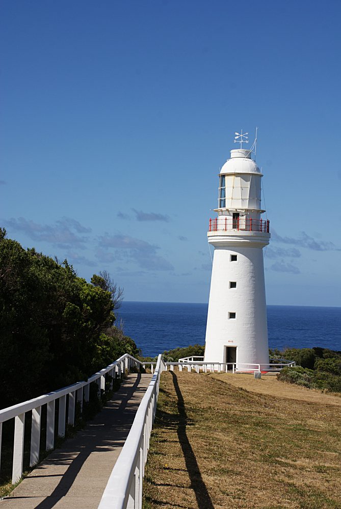 Erst ging es in den Cape Otway Nationalpark … ein kleiner Rundgang führt zum ältesten noch erhaltenen Leuchtturm auf dem Festland von Australien, welcher im Jahr 1848 ohne Zement und Mörtel gebaut wurde. Der 91 m hohe Leuchtturm darf betreten werden … oben wartet neben einer 5 Mio. AUD teuren Linse ein herrlicher Ausblick auf den Park und über die Küste! Im Park selbst befinden sich u.a. auch noch eine alte Telegrafenstation (1859 wurde die erste unterseeische Telegrafenleitung nach Tasmanien verlegt) sowie ein Radar-Bunker aus dem II. Weltkrieg.