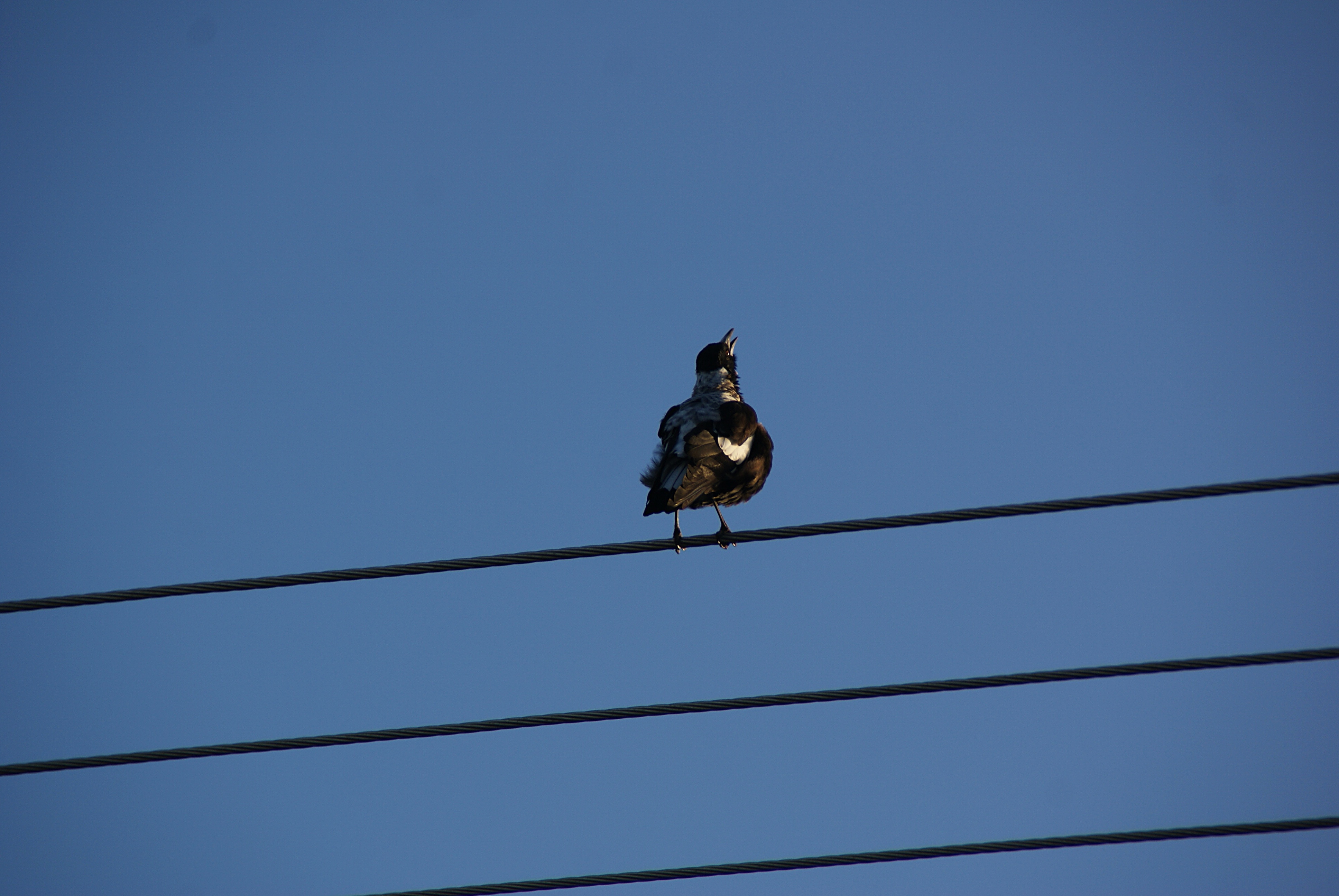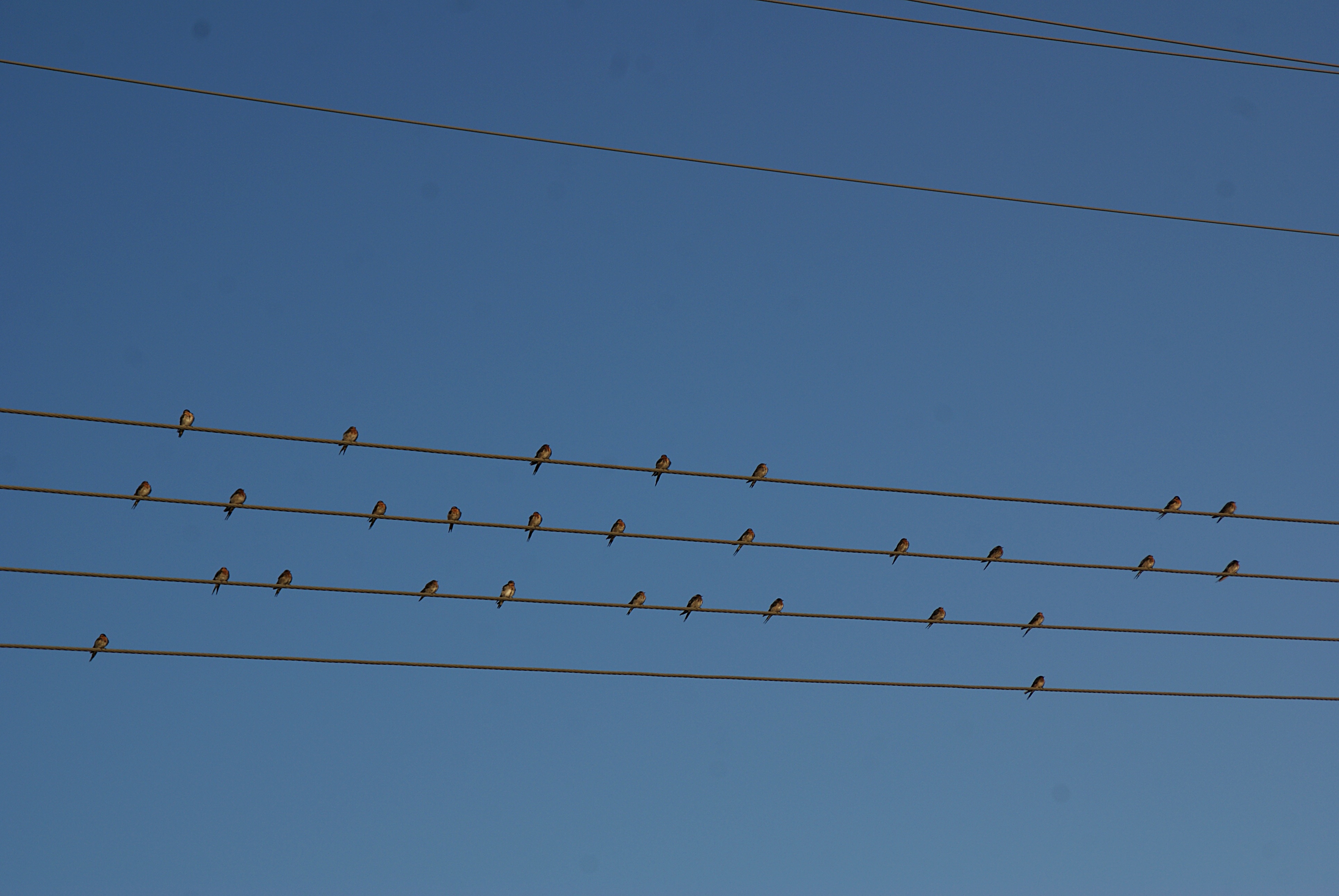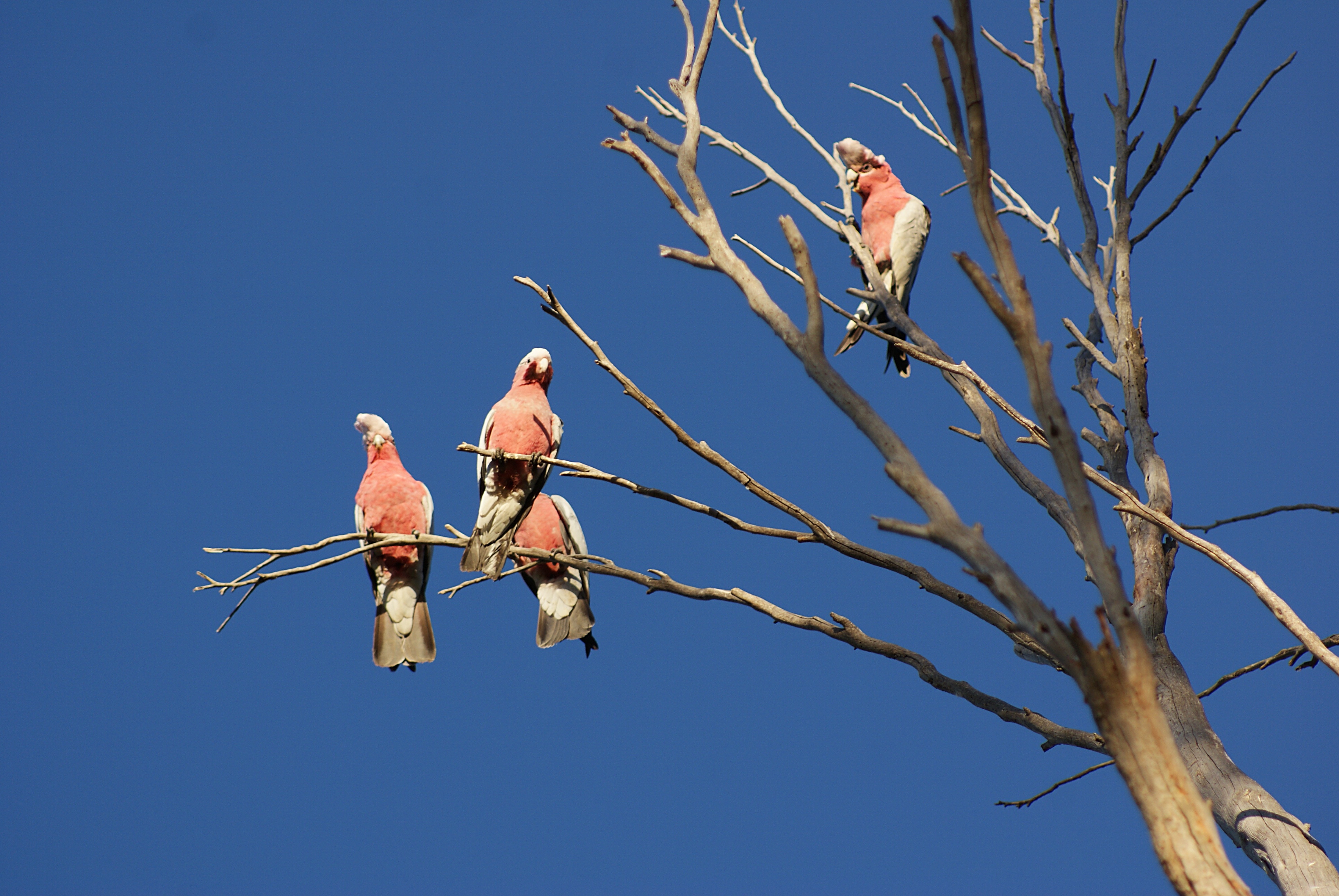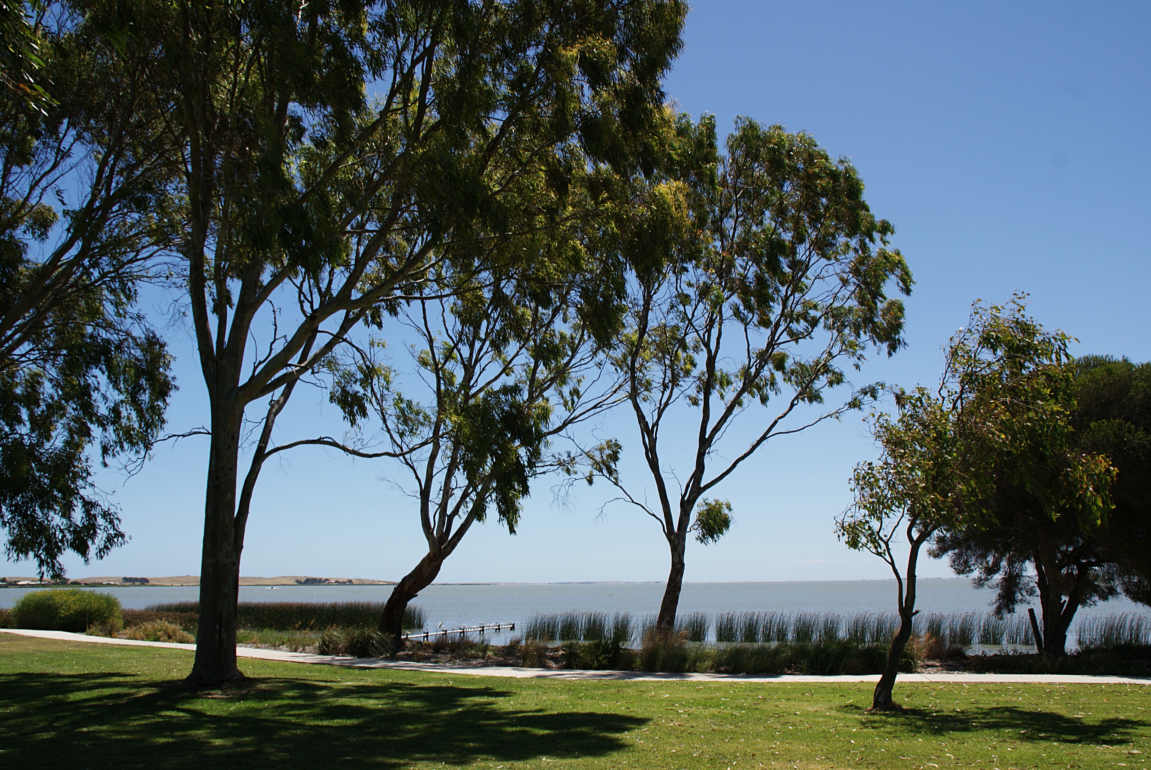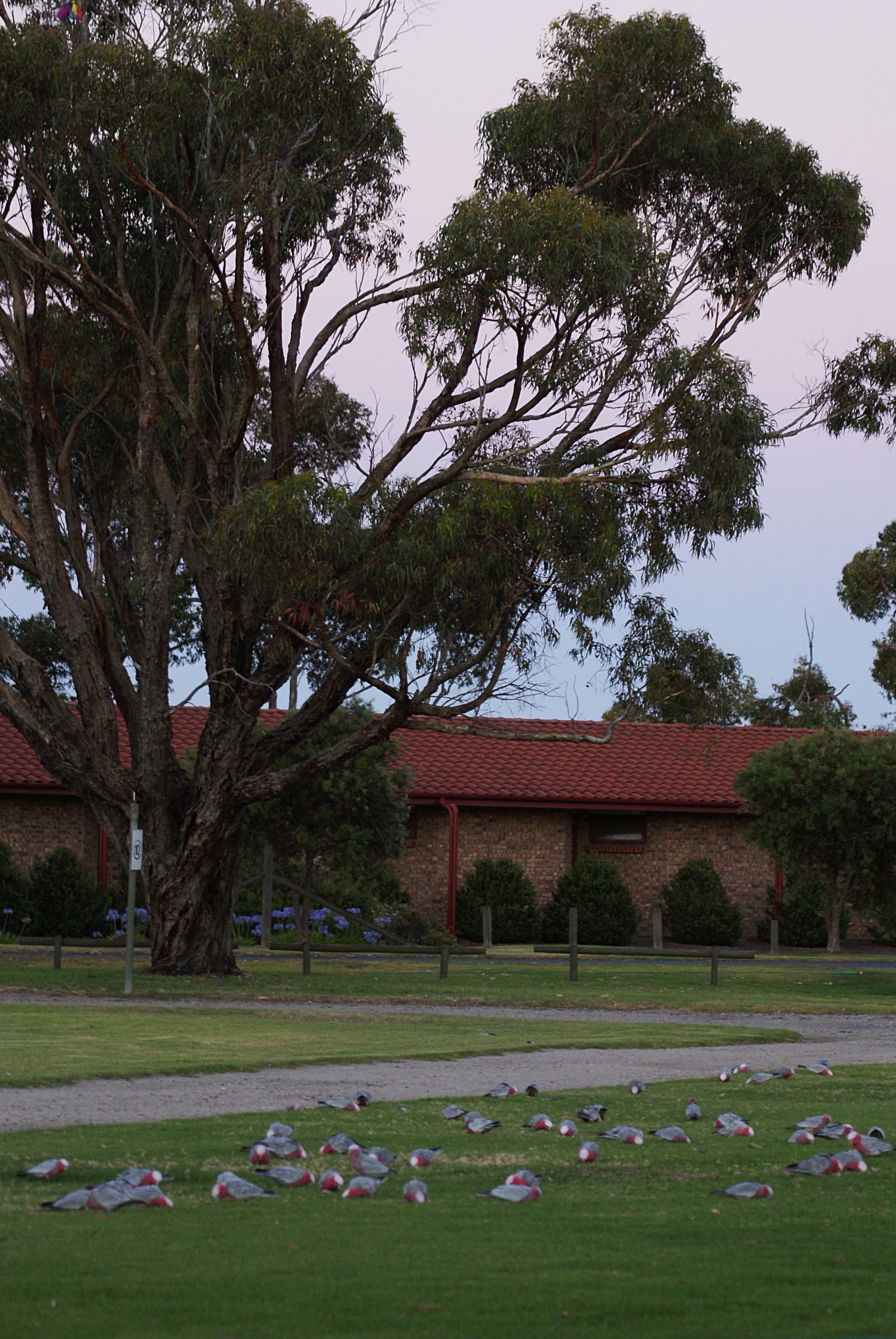 Alle Vöglein sind schon da, alle Vöglein, alle … und zwar in Goolwa. Insbesondere im Park vor unserem Motel tummelten sich mal grob geschätzt tausend davon. Bei einem kleinen Abendbummel zum Lake Alexandria wurde ich von allerlei Singlauten lautstark begleitet und unsere gefiederten Freunde saßen wie die Musiknoten auf den Stromleitungen – so etwas erlebt man auch nicht jeden Tag.