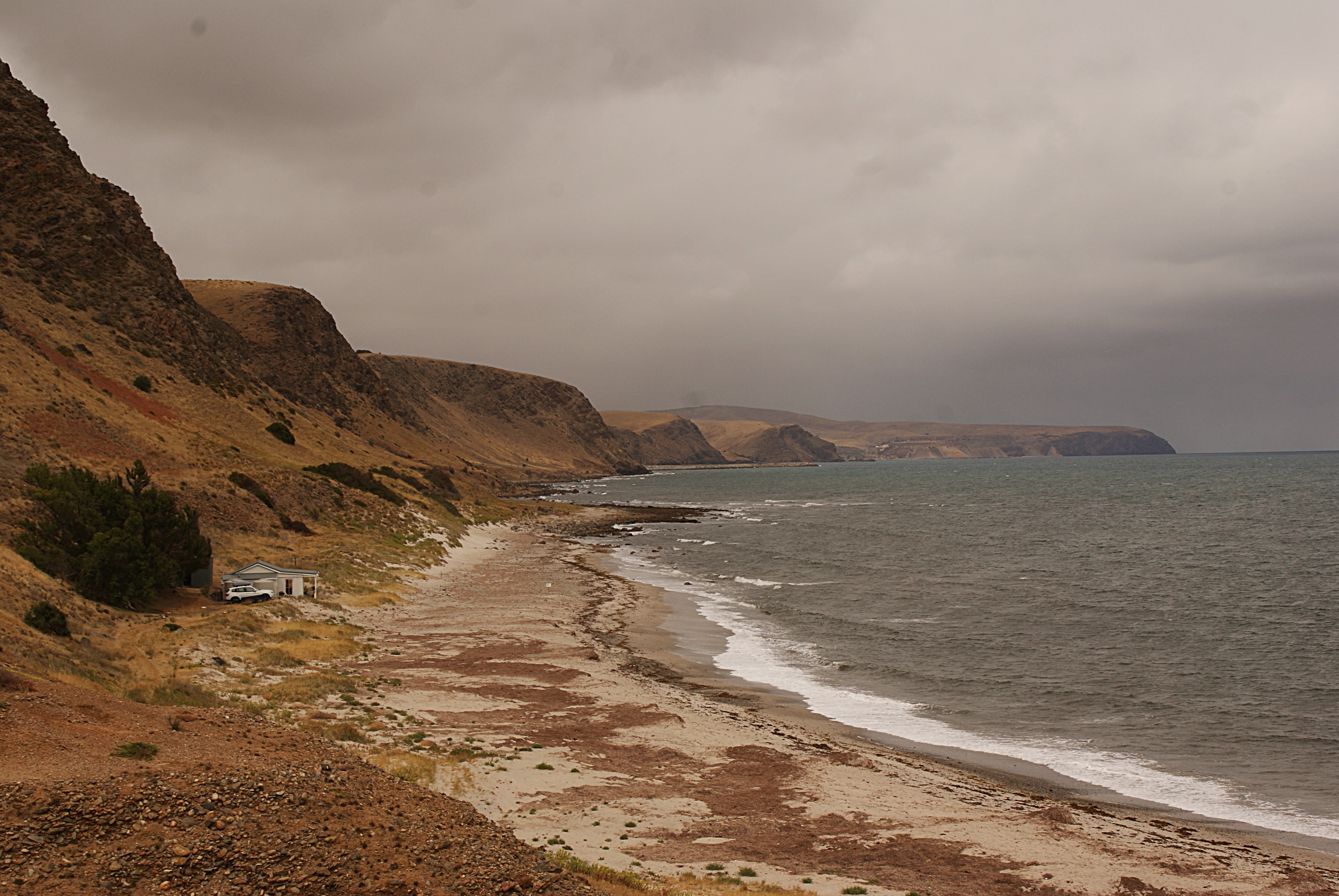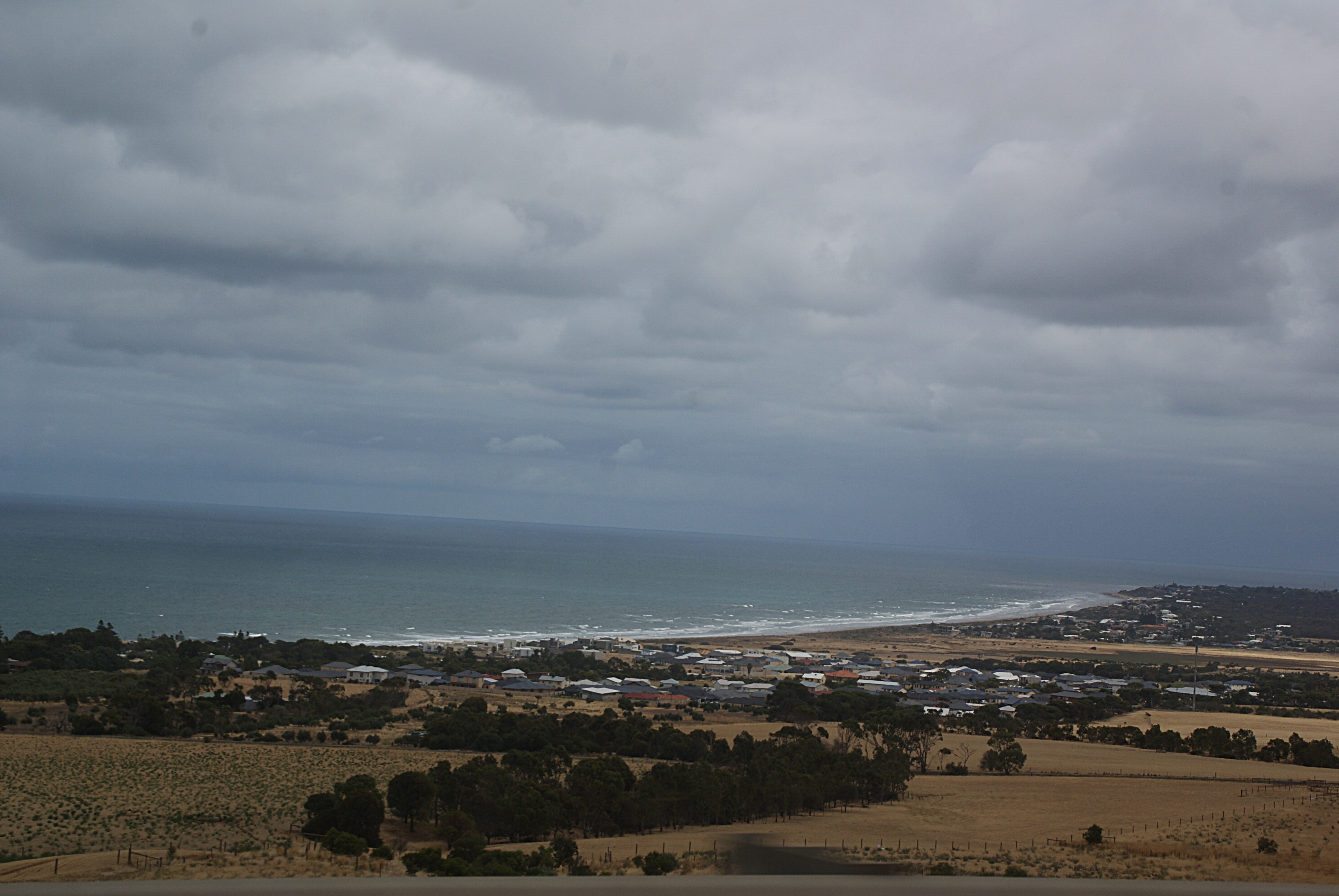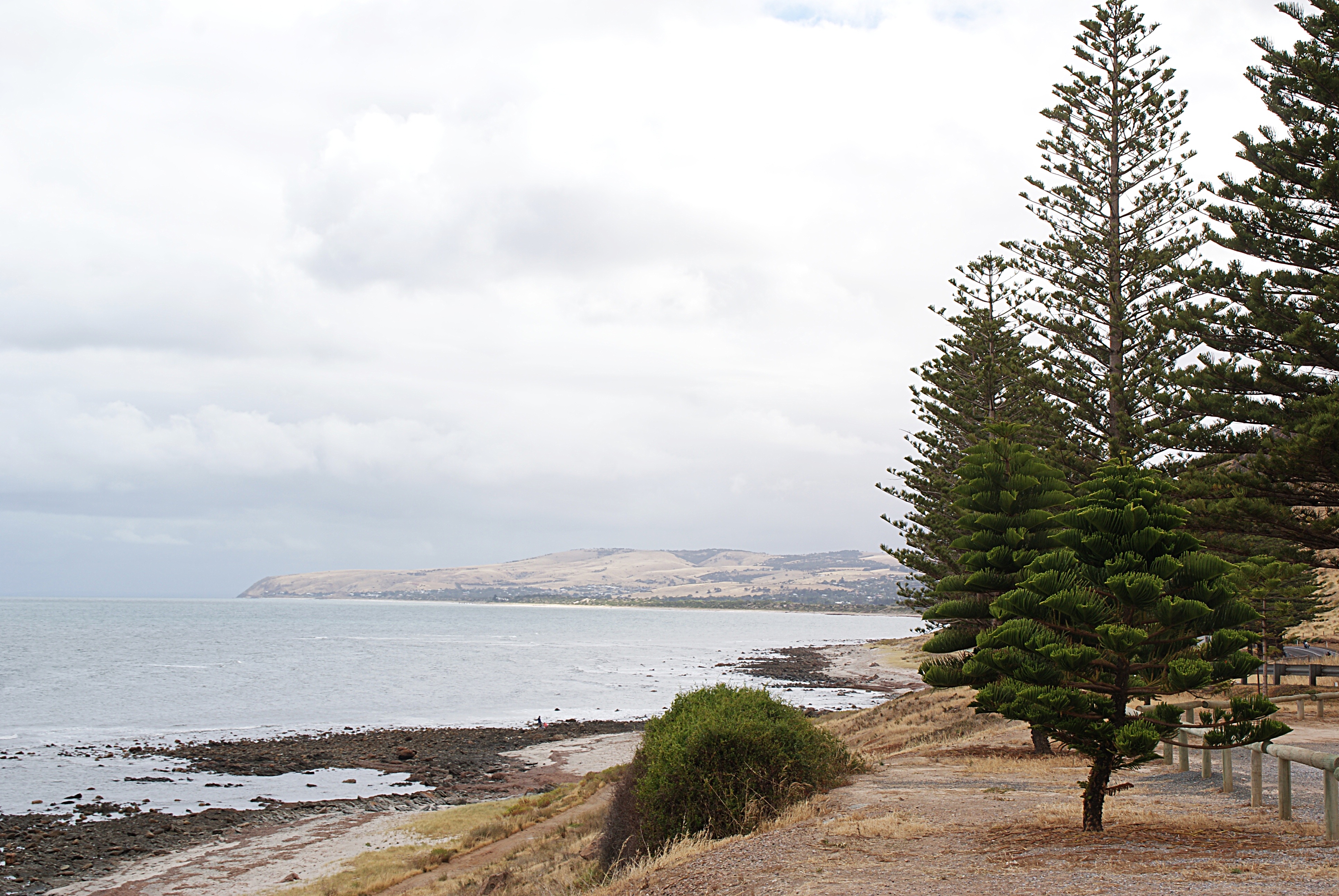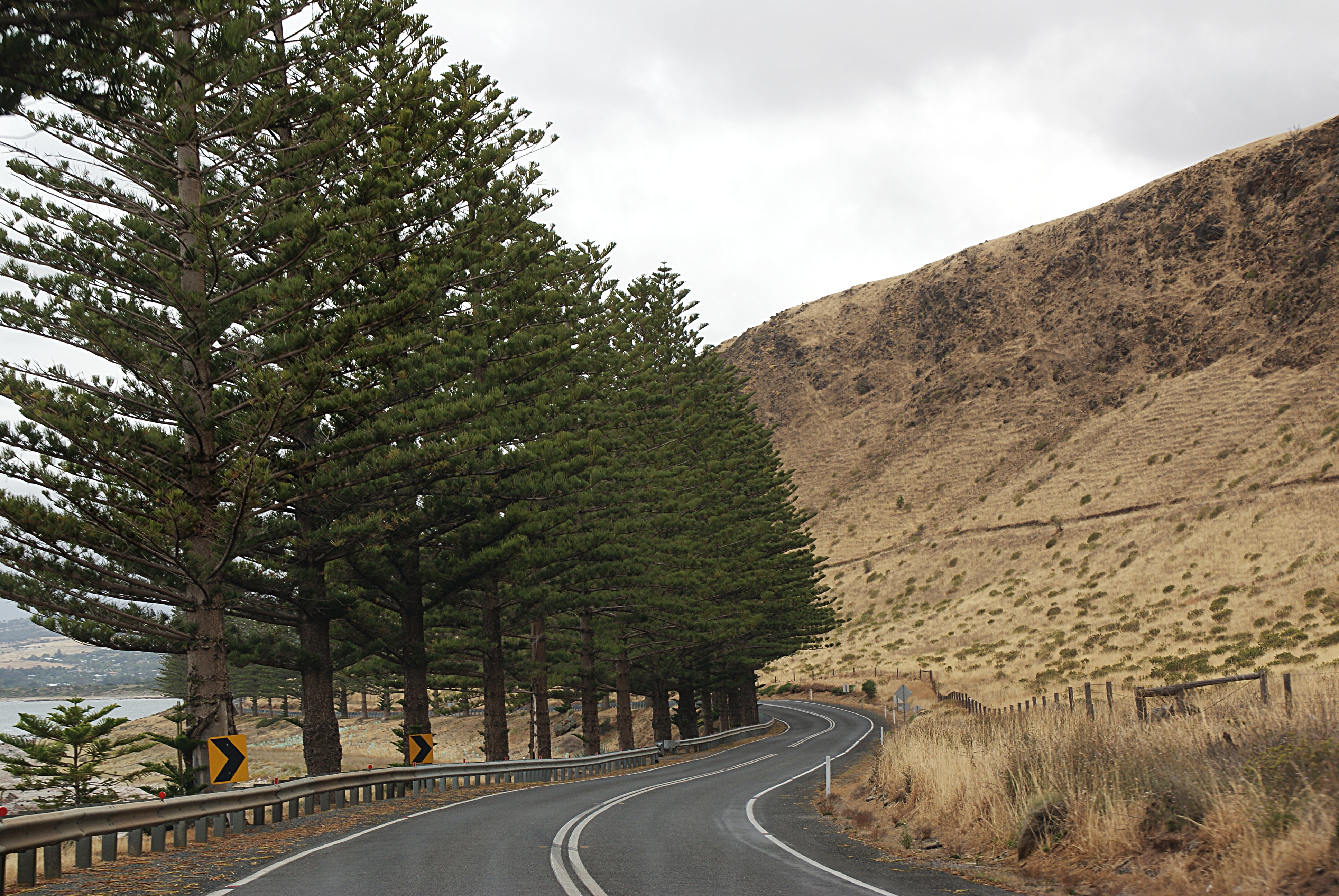 Zurück in Cape Jervis nahmen wir unser Auto in Empfang und kurvten entlang des Yankalilla Bay mit einer kurzen Pause beim HMAS Hobart Memorial Lookout …