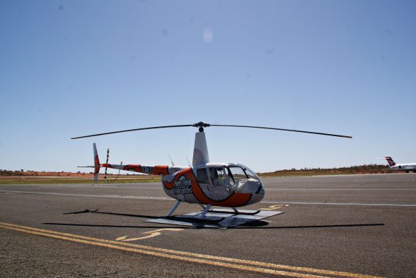 Nach einer kleinen Stärkung fuhren wir dann zum Flugplatz – mein erster Helikopterflug stand bevor … das flaue Gefühl war schnell verflogen und so konnte ich den Flug zum Uluru in vollen Zügen genießen. Aus der Vogelperspektive ließen wir den 348 m hohen Sandstein-Berg auf uns wirken. Leider landeten wir viel zu schnell wieder.