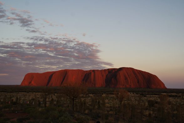 44 °C plus zerrten an der Substanz, aber selbst ein kleiner Hitzeschock konnte mich nur kurz einbremsen;-) Nach einer kleinen Pause in unserem gekühlten Kämmerchen und einem Sturm auf das Shopping Center (ein Fliegenabwehrnetz musste her!) war es aber dann so weit … wir wollten den Uluru direkt vor uns haben und hofften auf einen postkarten-getreuen Sonnenuntergang. Ob der wirklich so rot war?!
