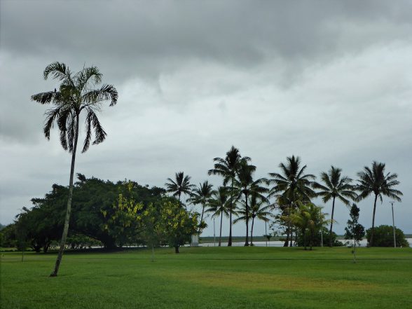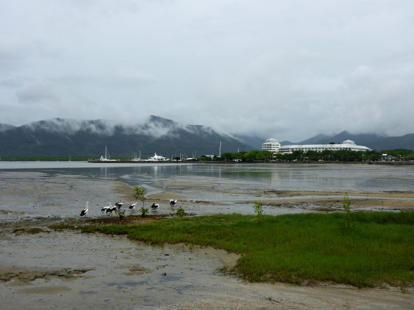 In Cairns angekommen wurden wir vom Taxifahrer gleich mit Ausflugstipps eingedeckt und nach einer kurzen Verschnaufpause in unserem Kämmerchen spazierten wir am Meer entlang bis ins Zentrum von Cairns. Puh, so viele Leute auf einem Haufen waren wir gar nicht mehr gewöhnt. Zudem wimmelte es nur so von Restaurants, Shops und Reisebüros. In einem solchen machten wir dann auch Halt und buchten noch schnell einen Ausflug nach Green Island, schließlich wollten wir etwas Great Barrier Reef-Luft schnuppern:-) Die Wettervorhersagen waren mies, weshalb wir uns für eine Halbtagestour entschieden .. und schon bei der Rückkehr ins Hotel schüttete es aus Kübeln – Quaxi hatte sich also nicht geirrt :-(