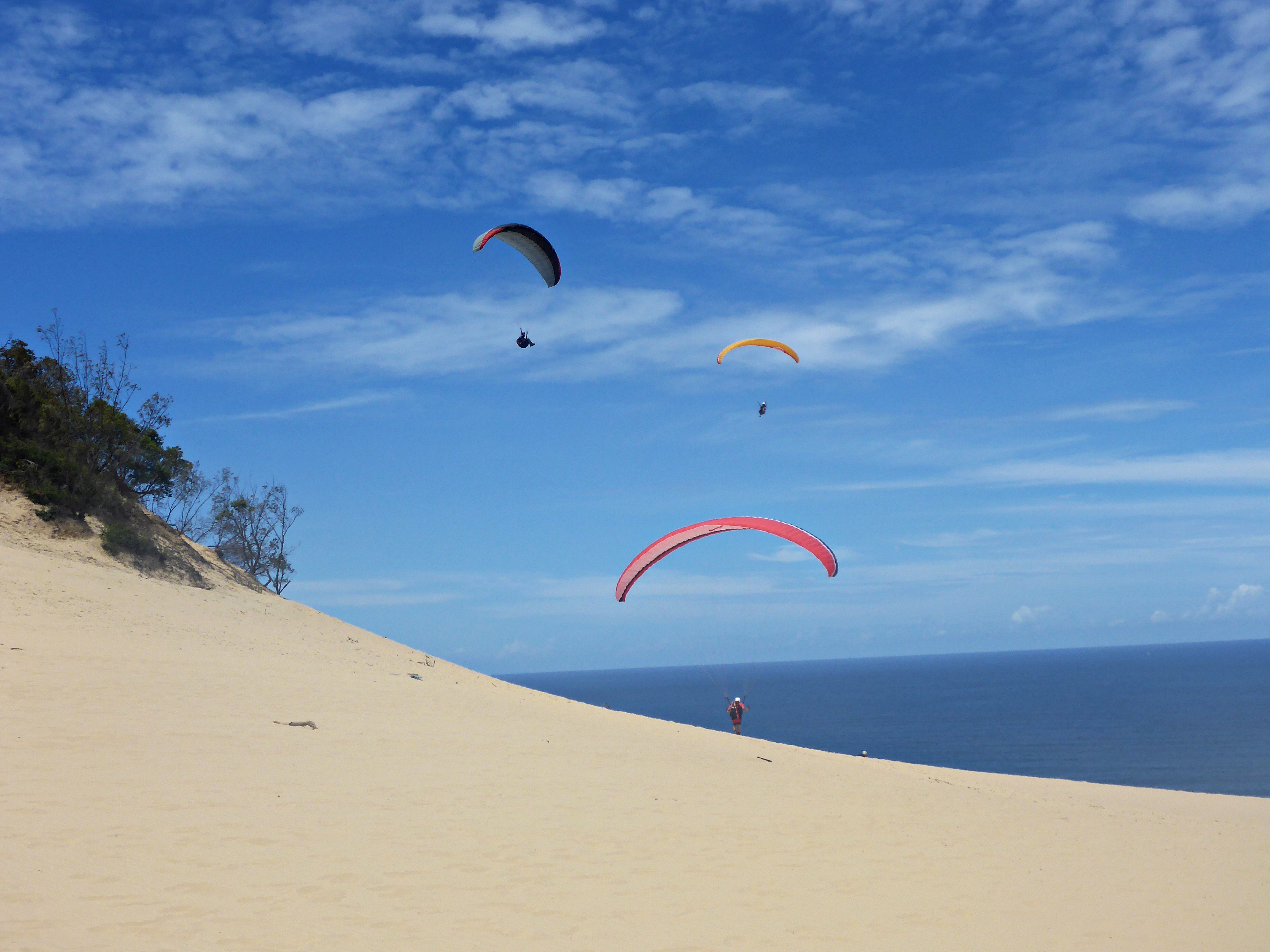 Von Rainbow Beach aus wanderten wir ein kleines Stück des Cooloola Great Walk bis zur Carlo Sandblow, eine 15 Hektor große und 120 m hohe Sanddüne. Von dort hat man nicht nur einen wunderbaren Blick auf den Rainbow Beach, sondern kann auch den Paragleitern beim Start zusehen.