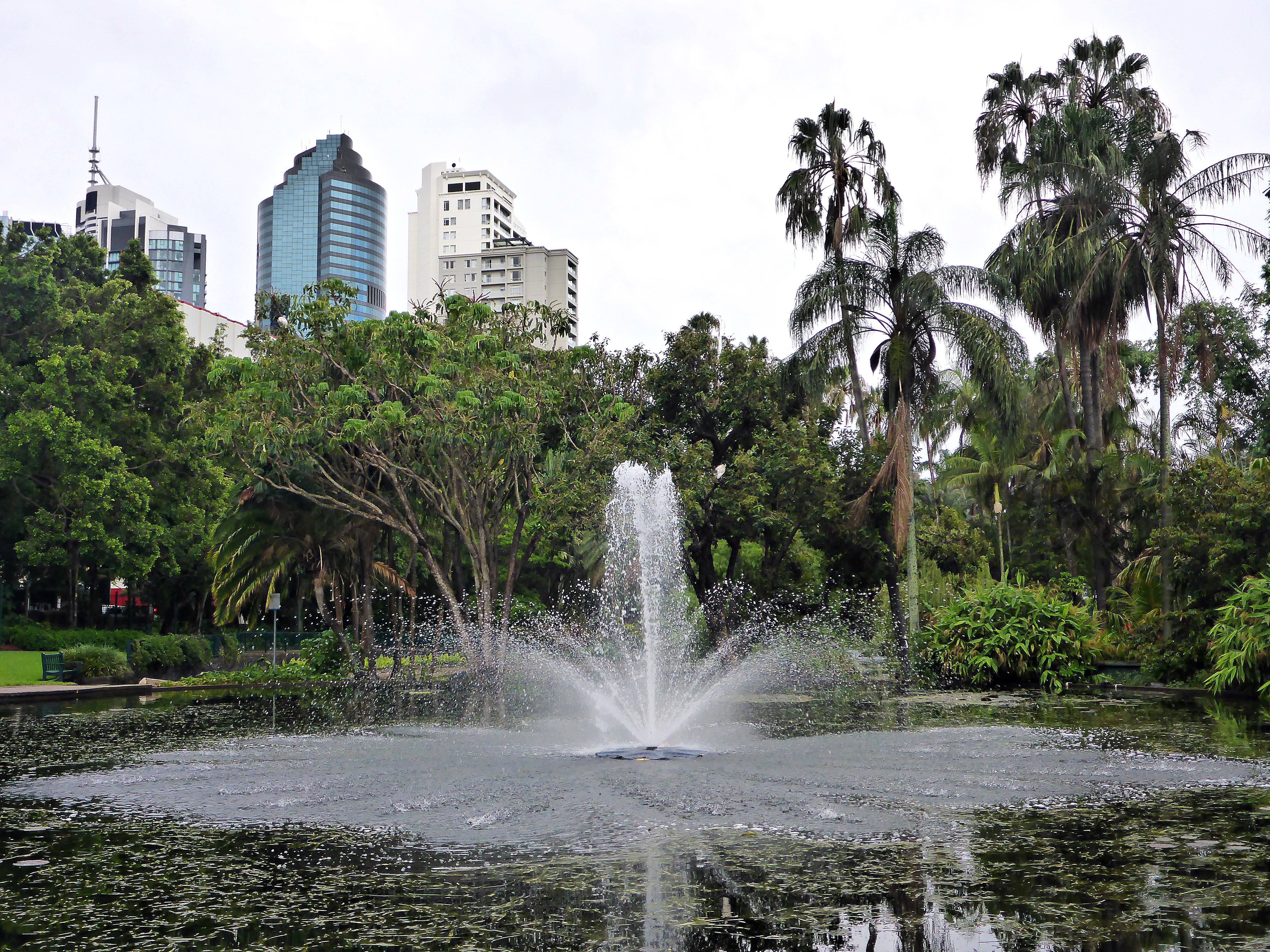 Nachdem der Regen nachgelassen hatte, erkundeten wir noch den sehr schönen Brisbane City Botanical Garden, bevor wir an der Eagle Street entlangschlenderten.