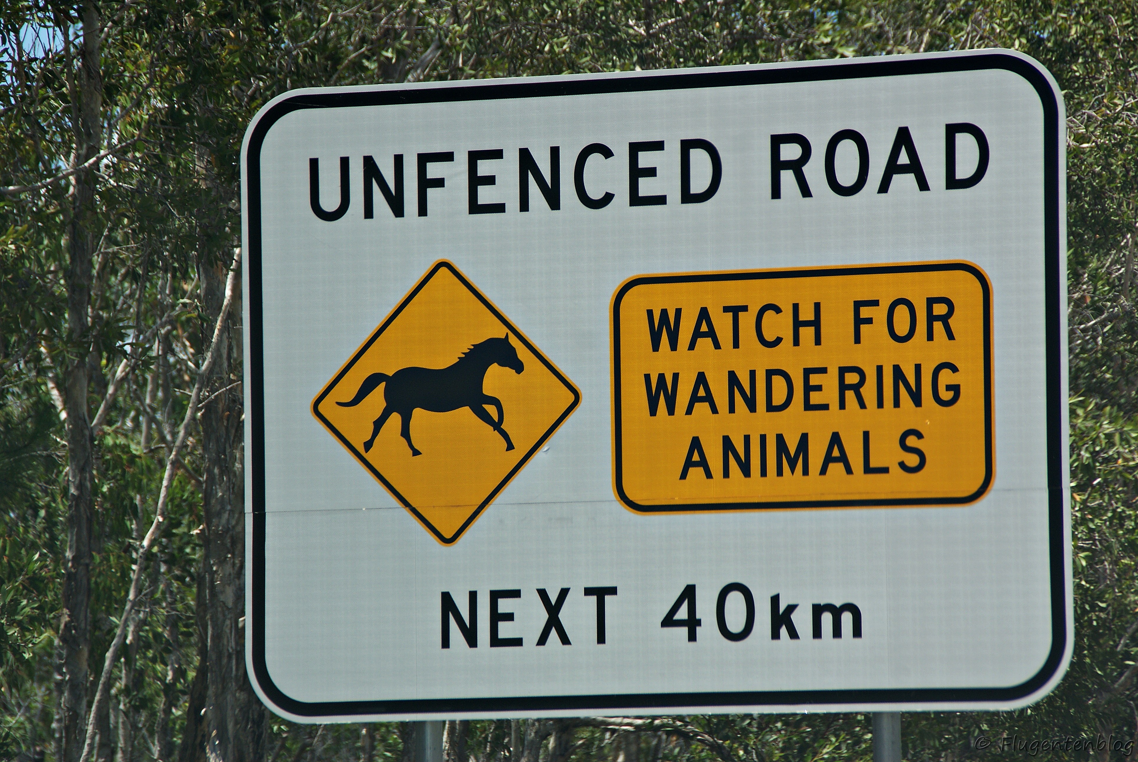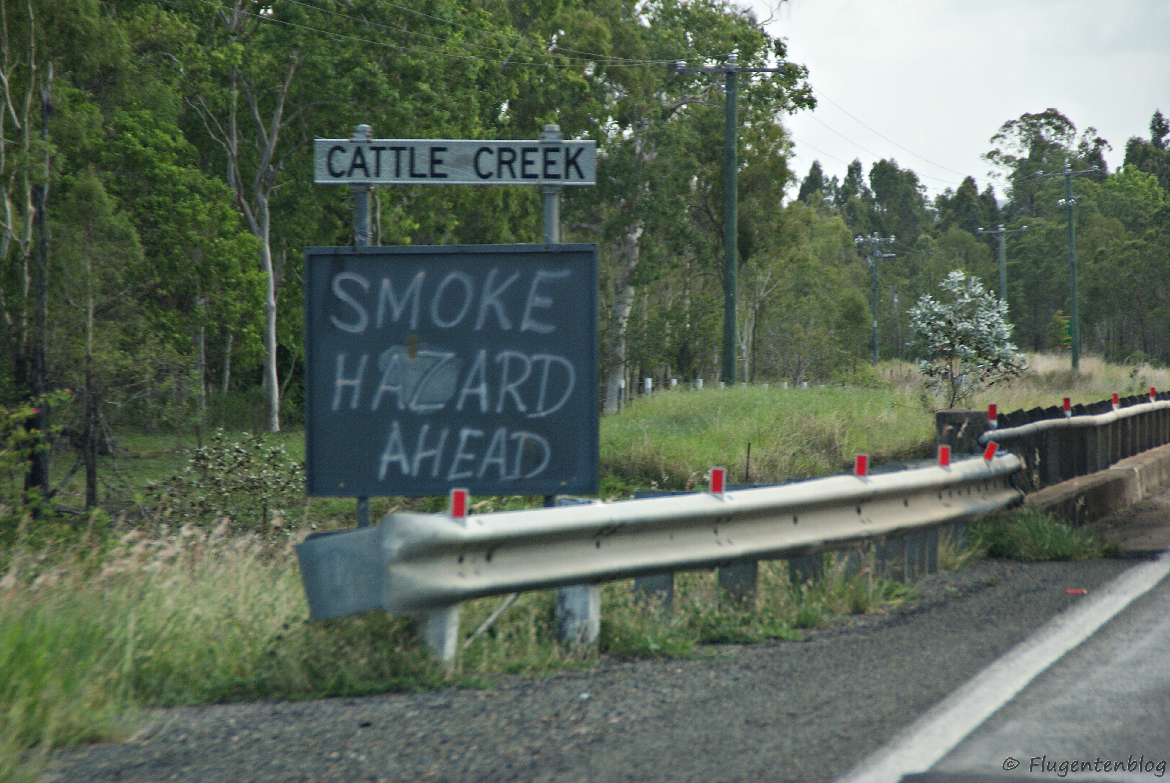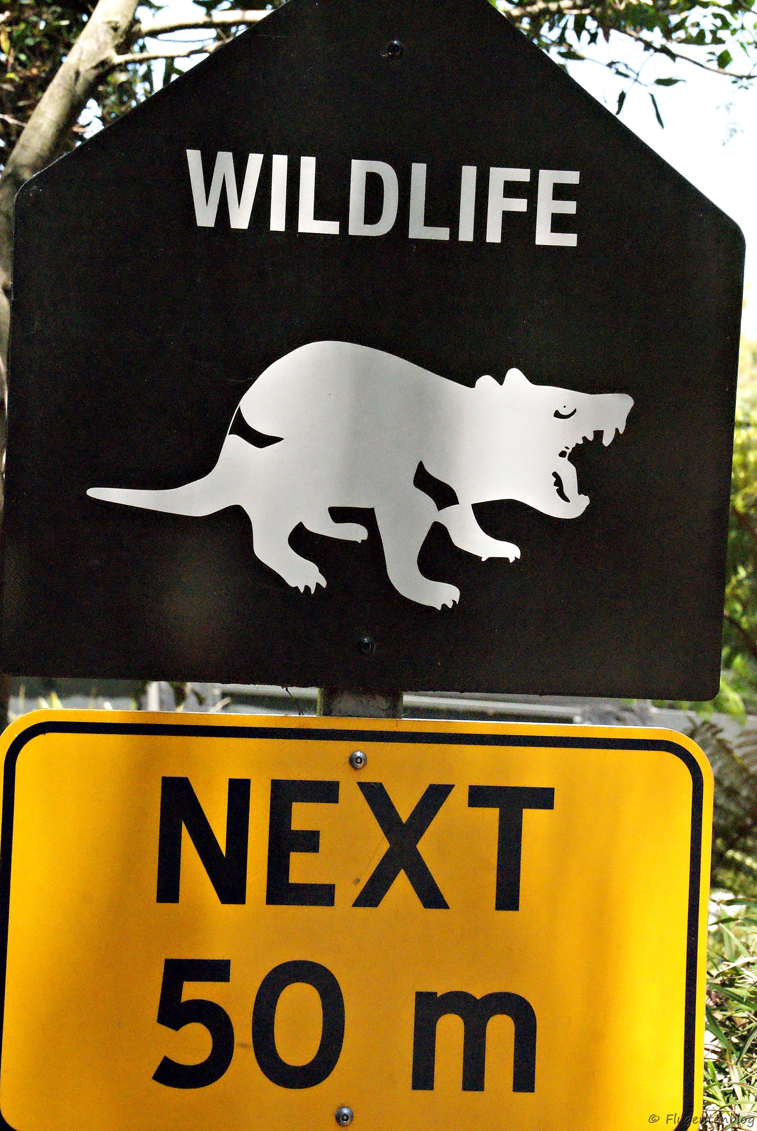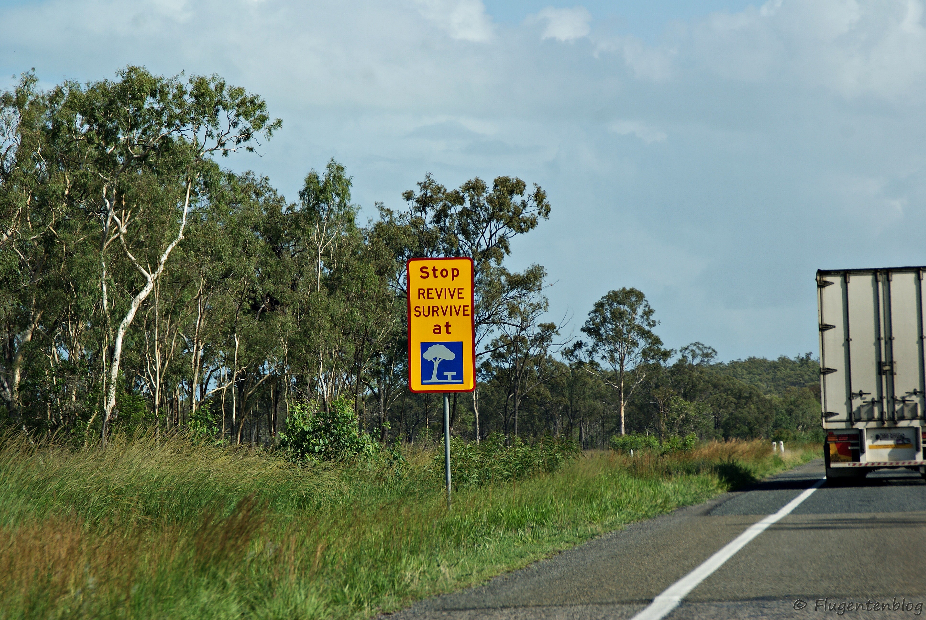 Ich weiß nicht, wie es euch so geht, aber ich finde auf Reisen immer auch die Verkehrszeichen und Hinweisschilder sehr spannend. Insbesondere ein Road-Trip auf einer eher langweiligen Strecke kann dadurch richtig interessant werden, zumal ich dann meistens versuche, ein halbwegs scharfes Foto von einem solchen Schild zu ergattern und so auch als Beifahrerin gut beschäftigt bin ;-) Gerade in Australien habe ich so manches Zeichen entdeckt, welches man im heimatlichen Österreich nicht einmal im Museum finden würde; zugegeben, ein Krokodil oder Pinguin-Warnschild wäre bei uns – außer im Zoo – wohl auch fehl am Platz. Ein paar Hinweise aus dem australischen Schilderwald habe ich euch bereits in meinem Bericht über die Strecke Rockhampton – Hervey Bay gezeigt. Hier noch ein paar weitere meiner australischen Fundstücke ….