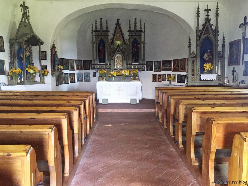 Stimmt, mit Humor geht vieles leichter und Humor ist, wenn man trotzdem lacht. Der Johannesbrunnen und die Engelskapelle laden zu einer Rast – ich halte mich aber nicht lange auf, die Wetterprognose ist nicht allzu gut und ich will vor dem großen Regen noch ein paar Kilometer schaffen.