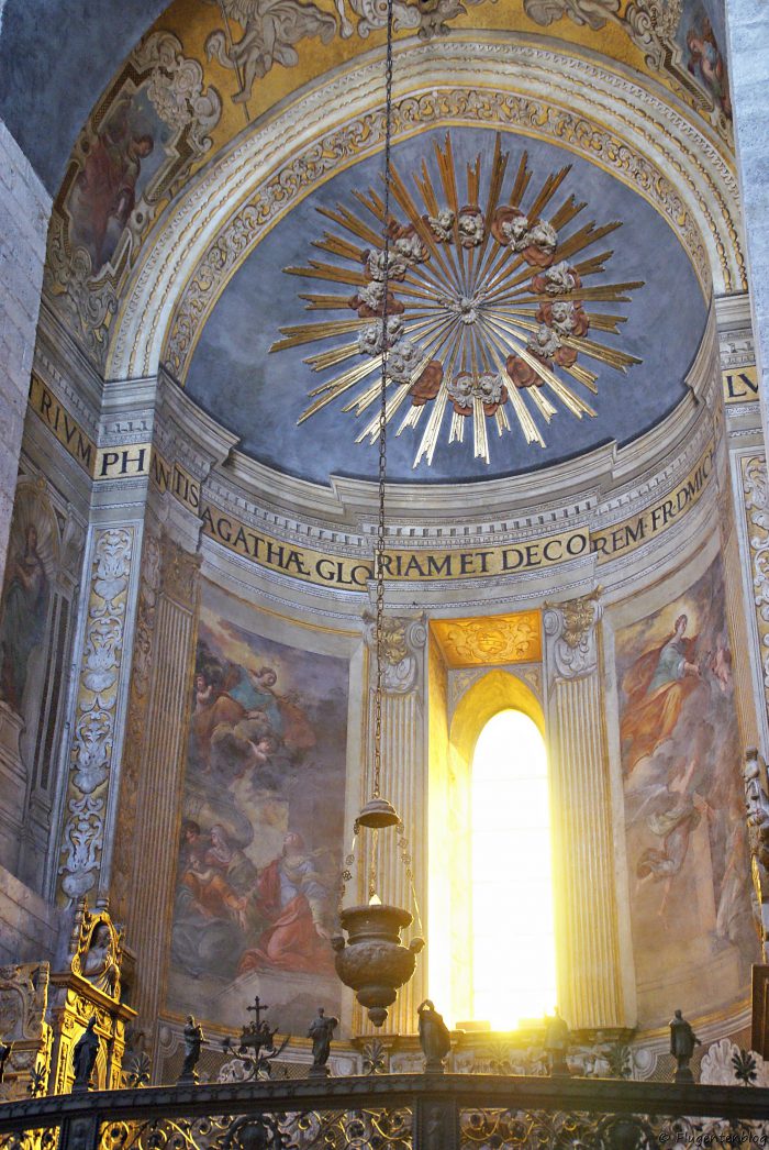 Früher ein Benediktiner-Kloster, beherbergt San Nicolò heute einen Teil der Universität von Catania. Für einen Rundgang durch das Kloster reichte die Zeit leider nicht mehr, aber bereits von außen beeindruckte mich das „Spukschloss“ sehr. Auch hier hinterließ der Ausbruch des Ätna im Jahr 1669 seine Spuren. Der Wiederaufbau der Chiesa di San Nicolò blieb unvollendet. Interessant fand ich die 37 m lange Sonnenuhr im vorderen Bereich der Kirche: Jeden Tag um 12 Uhr scheint ein Sonnenstrahl durch ein Loch im Dach auf den am Boden befindlichen Meridian und zeigt dabei Tag und Monat an.