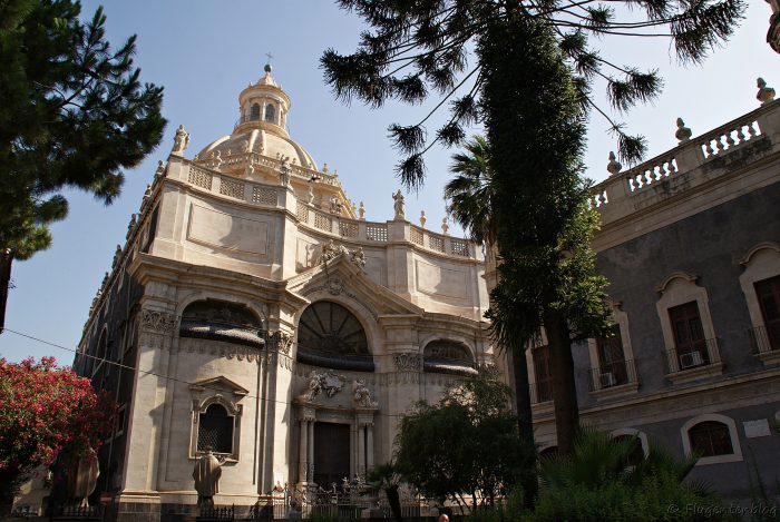 In unmittelbarer Nähe zum Fischmarkt befindet sich der Piazza del Duomo mit weiteren zwei der Hauptattraktionen von Catania: Der Elefantenbrunnen (Fontana dell’Elefante, Liotro) als Wahrzeichen der Stadt und die Kathedrale (Duomo di Sant‘ Agata). Auf diesem Platz befindet sich auch das Rathaus.