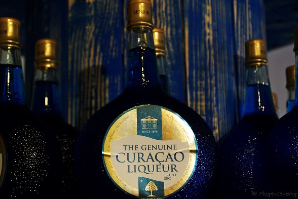 Pflichtprogramm für jeden frisch gebackenen Curaçao-Touristen ist die Verkostung eines originalen Blue Curaçao. Der blaue Likör, den die meisten von uns wohl vor allem wegen dem Cocktail ‚Swimming Pool‘ kennen, hat seinen Ursprung – wie der Name schon verrät – auf der Insel Curaçao. Dass es den blauen Likör heute gibt, ist einer Reihe von Zufällen zu verdanken. Vor langer Zeit bauten die Spanier auf Curaçao ihre Valencia-Orangen an, aber ähm, was war denn das? Anstelle der ihnen bekannten großen Orangen hingen hier verschrumpelte Mini-Dinger vom Baum, die auch noch bitter schmeckten. Heute kennt man diese Miniorangen auch als Bitterorangen. Für die Spanier war das nichts, weshalb sie Curaçao verächtlich als nichtsnutzige Insel bezeichneten. Viele Jahre später lebte Herr Senior, der aus der Not eine Tugend machte und mit den Schalen der Bitterorangen einen Likör braute, der zwar gut schmeckte, aber farblos war. Nur beim allerersten Brauvorgang im Jahr 1896 war der Likör blau – schuld daran war offenbar eine chemische Reaktion zwischen dem Alkohol und dem verwendeten Kupferkessel. Die blaue Variante verkaufte sich aber so gut (kein Wunder, die Curaçaoaner lieben es bunt!), dass Herr Senior den Zufall nutzte und begann, blaue Lebensmittelfarbe dazu zu geben. Curaçao ließ sich aber patentrechtlich nicht schützen, weshalb weltweit einige Fabriken den blauen Likör herstellen. Aber nur auf Curaçao gibt es das Original zu kaufen. Die Fabrik hat ihren Sitz im Landhuis Chobolobo in Willemstad. Ihr angeschlossen ist ein Besucherzentrum, in welchem Führungen inklusive Verkostungen angeboten werden. Ein Shop darf natürlich nicht fehlen. Und wie kann es anders sein, heute gibt es den Likör auch in Grün, Rot, Braun, Gelb und Orange. Ich bin ja auch in Willemstad, der Stadt der bunten Häuser und Liköre!