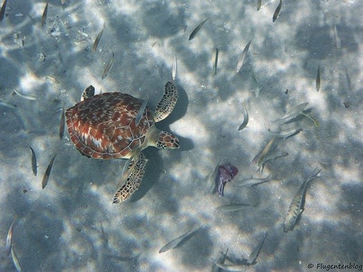 Aus der Sicht eines fotografischen Experten ist es vermutlich nicht mein schönstes Foto, aber ich verbinde damit eines meiner schönsten Reiseerlebnisse bisher überhaupt. Im Februar hatte ich auf der paradiesischen Karibikinsel Curaçao das Glück, mit Wasserschildkröten in freier Wildbahn schnorcheln zu können. Ich konnte mich überhaupt nicht mehr satt sehen an den eleganten Tauchbewegungen dieser imposanten Meeresbewohner. Als ich wieder an den Strand zurückkehrte, grinste ich von einem Ohr zum anderen, so geflasht war ich von diesem wunderbaren Erlebnis. Wo auch ihr Gelegenheit zu einem Schildkrötendate habt, habe ich euch im Rahmen meiner Flugentenhighlights aus Curaçao verraten.