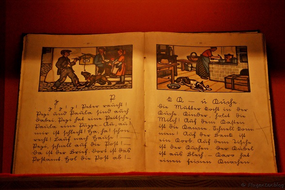 Bevor ich jedoch mit meinem Spaziergang durch das Gelände beginne, statte ich der Dauerausstellung „Die erinnerte Zeit“ gleich nach dem Eingang des Freilichtmuseums von Stübing einen Besuch ab. Dort erhalte ich Einblicke in die frühere bäuerliche Lebensweise und Informationen über die verschiedenen Formen der Höfe. Dach ist nicht gleich Dach. Kittelschab-, Sparren-, Pfettendach, um nur ein paar zu nennen. Galtviehalm? Noch nie gehört. Außerdem lerne ich, dass beim „Gasslgehen“ die erste „liebesorientierte Begegnung mit dem anderen Geschlecht“ erfolgte. Hmmm, ob das „Gassigehen“ mit dem Hund auch davon kommt?! Wie auch immer, bevor ich die Ausstellung wieder verlasse, feiere ich noch das Brauchtumsjahr mit und überlege schon, ein Wörterbuch dazu zu schreiben: Heahgreifer, Schottenklaner, Klötzler, Tresterer, Flinserlweiber, Schleicherlauf, Schellerlauf und Schemenlauf. Die neckische Beschimpfung „Pfingstlucken“ könnte mich als Langschläferin wohl auch schnell einmal treffen. Wer wissen möchte, wer bzw. was sich hinter all diesen Bezeichnungen verbirgt, sollte dieses Museum keinesfalls verpassen.