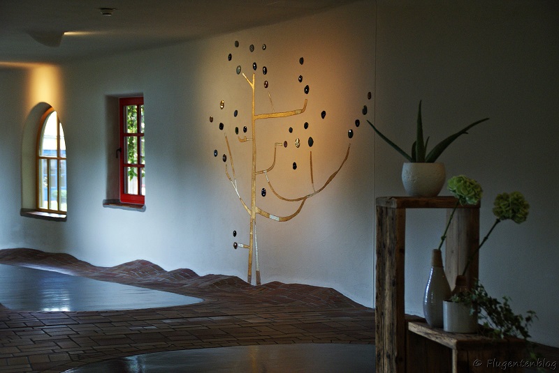 Und wenn sich an den Mauern etwas Moos absetzt oder eine Fliese abgesplittert ist, dann ist das ganz im Sinne von Friedensreich Hundertwasser: