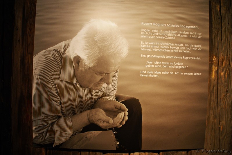 Zudem besuchte ich die „Lebenswerkstatt“, in welcher es Eindrücke zur ereignisreichen Lebensgeschichte von Robert Rogner sowie zur Entstehung der Theme zu sehen gibt. „Mut kann man nicht kaufen.“ Dieser Spruch stammt von Robert Rogner und dass er Mut hat, hat er in seinem Leben schon oft bewiesen. Vom armen Jungen mit einem alkoholkranken Vater und ohne eigenes Paar Schuhe zum Visionär, der sich den Traum vom eigenen Flugzeug erfüllen kann. Seine Herkunft hat Robert Rogner aber nie vergessen und so macht er sich heute für karitative Zwecke stark.