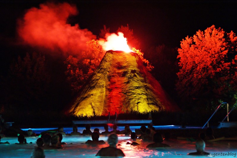 Statt ins Restaurant ging es daher noch einmal in die Vulkania® Badelandschaft, denn ein kleiner Insidertipp hatte mir verraten, dass der Vulkan bei schönem Wetter an Samstag Abenden gerne auch mal ausbricht ;-)