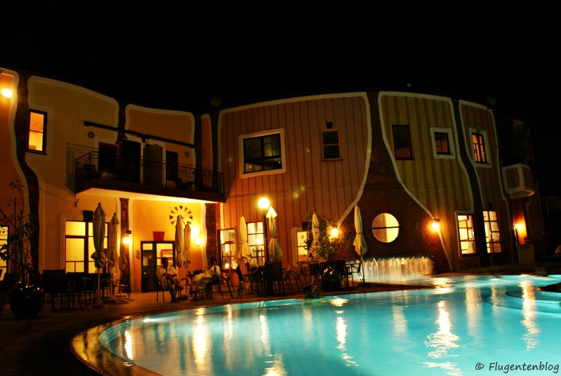 Schon seit vielen Jahren schwebte mir ein Aufenthalt im Rogner Bad Blumau vor. Vor ein paar Wochen wurde dieser Wunsch Wirklichkeit und so konnte ich ein paar Tage den Alltagsstress hinter mir lassen und die Atmosphäre des Rogner Bad Blumau genießen. Bereits die kunderbunten Außenfassaden entlockten mir ein Lächeln und ich hätte am liebsten jede Ecke *ähm* Rundung fotografiert.