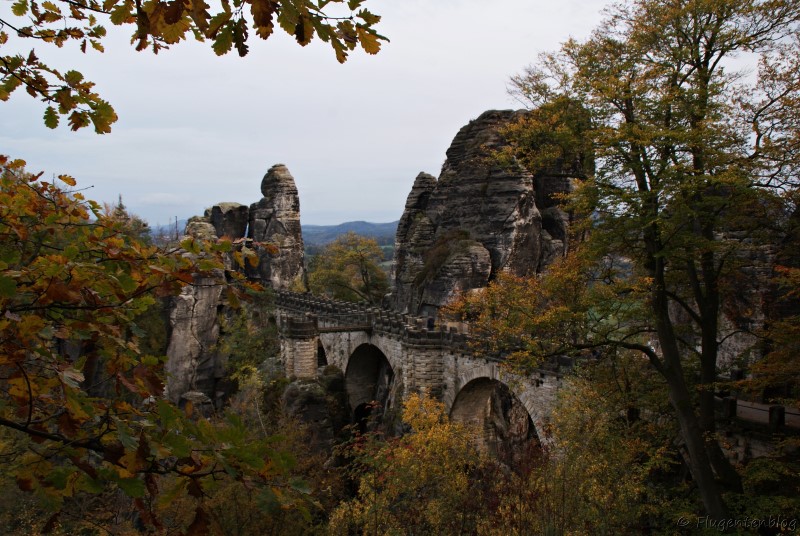 Die Bastei – der Foto-Hotspot in der Sächsischen Schweiz schlechthin, sagt das Prospekt. Zu Sonnenaufgang im Spätsommer und Herbst soll es dort besonders schön sein, wenn die Nebelschwaden die Gegend in eine mystische Landschaft verwandeln. Ich war zu Sonnenuntergang dort, sagte zumindest die Handy-App. Denn die Sonne zeigte sich an diesem Tag leider nicht. Nichtsdestotrotz eine bizarre Elbsandstein-Felsformation, die definitiv einen Besuch wert ist. Aber nicht nur für eingefleischte Fotografen (und all jene, die es werden wollen) soll sich das frühe Aufstehen lohnen, sondern auch für all jene, die sich nicht gemeinsam mit den Touristenmassen über die 76,5 m lange Brücke wälzen möchten.