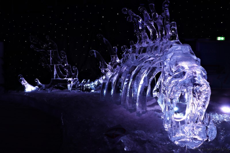 HINWEIS: Die Fotos stammen alle aus der Ausstellung 2018/19. Ich bin mir sicher, dass auch 2019/20 beeindruckende Eisskulpturen zu sehen sein werden. Ob dabei auch eine bekannte Skulptur aus der vorjährigen Ausstellung dabei sein wird? Ich würde sagen: lassen wir uns überraschen! Sobald ich es in die neue Ausstellung schaffe, werde ich euch natürlich ein paar Eindrücke davon zeigen.