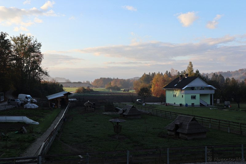 In den frühen Morgenstunden genoss ich noch den Ausblick auf die anderen Hütten, bevor ich mich wieder von meiner Hütte verabschieden musste. Punkto Sauberkeit gab es in meiner Hirtenhütte noch Luft nach oben, aber nachdem die anderen Teilnehmer dieser Reise diesbezüglich nichts zu beanstanden hatten, habe ich wohl nur die Montags-Hütte erwischt. Und ein bisschen Camping-Gefühl muss bei allem Luxus ja doch noch sein ;-)