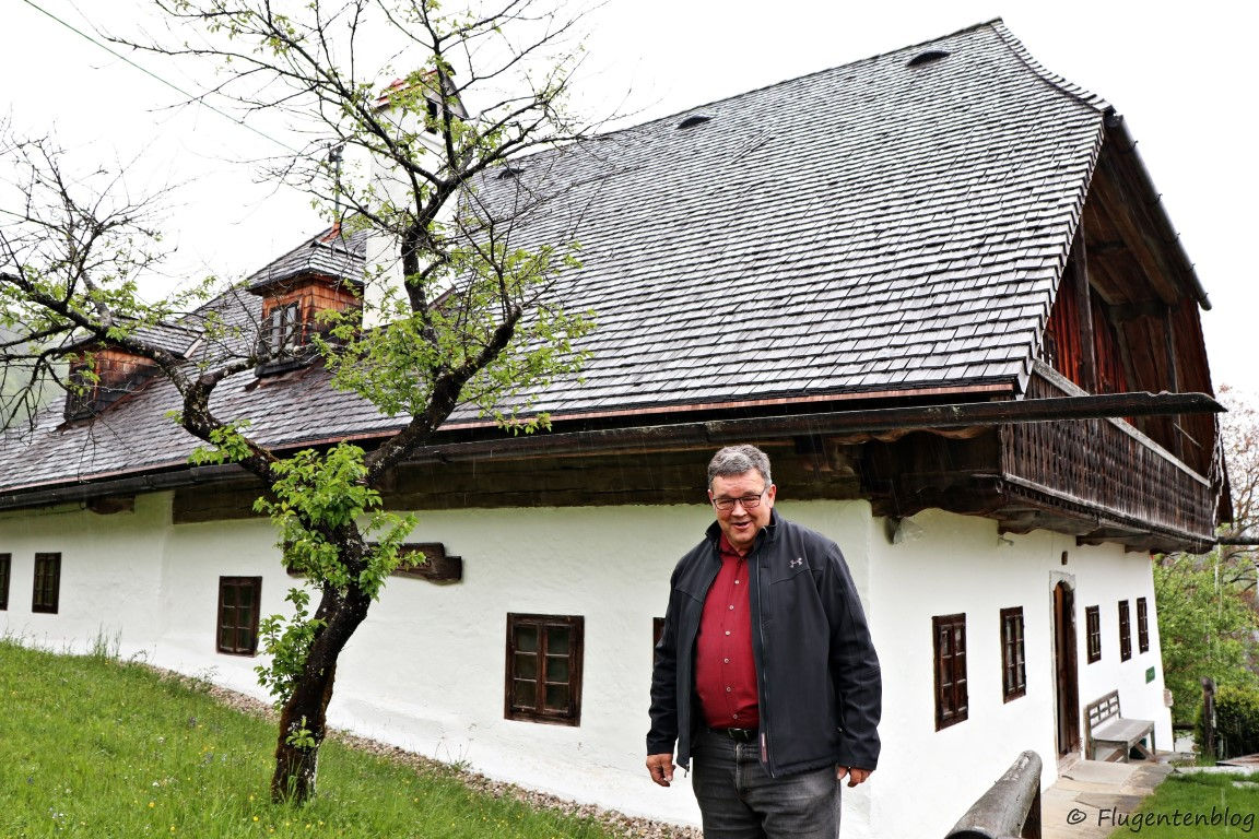 - Josef Moser vor dem Viechtauer Heimathaus.