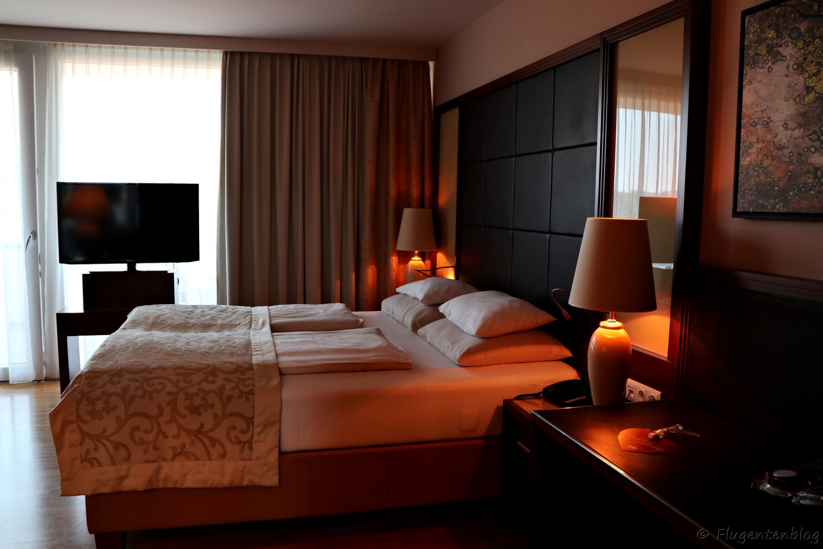 Ich bin mir sicher, es gibt kleinere Wohnungen als mein Hotelzimmer. Mein Bad zu Hause ist jedenfalls nur halb so groß wie das Bad im AVITA Resort. Ich hatte ein Wellnesszimmer Deluxe mit Boxspring-Bett ergattert und fühlte mich pudelwohl. Toppen kann das wohl nur mehr die Penthouse Suite, aber die ist gerade von einem der Fußballspieler besetzt. Viele Fußballclubs quartieren sich im Hotel für ihr Trainingslager ein. Insgesamt gibt es 108 Zimmer in 8 Kategorien, wobei 7 Zimmerkategorien mit Balkons oder Terrasse ausgestattet sind.