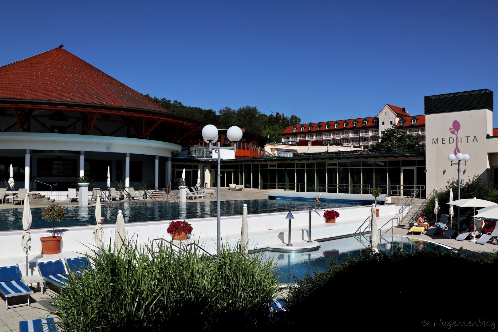 Ich liebe es, bei warmem Wetter draußen auf einer Terrasse zu frühstücken. Wenn dann so wie im AVITA Resort auch noch ein Teller mit leckeren regionalen Schmankerl vor mir steht, kann der Tag eigentlich nur mehr perfekt werden. Mittags gibt es zur Stärkung einen Vitalsnack. Am Abend wird ein 5-Gang Abenddinner geschlemmt. Mit einem Uhudler-Sekt als Aperitif und einem Beef Tartar als Vorspeise hatte man mich bereits geködert. Auch die weiteren Gänge ließen ein zufriedenes Flugenten-Schleckermäulchen zurück. Wenn du gar nicht aus der Therme rauskommst, kannst du dein Abendessen auch à la carte im MEDITA Thermenrestaurant zu dir nehmen.
