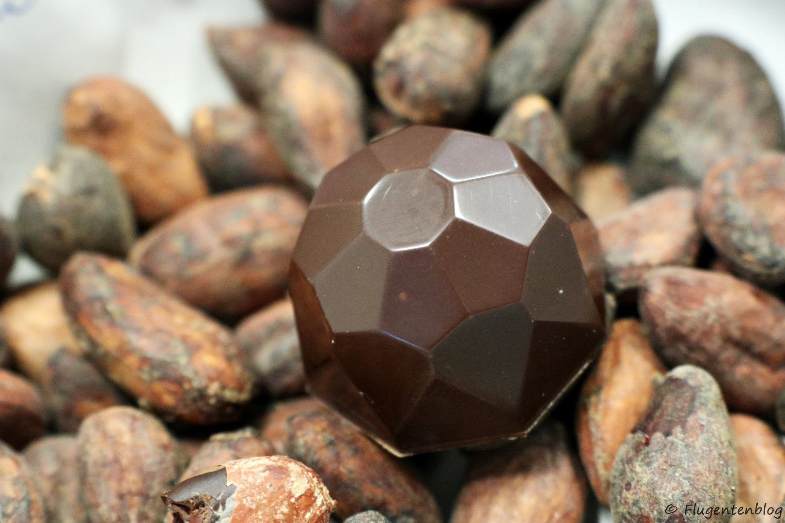 - Aus der Kakaobohne wurde eine Praline „Marzipan mit Milchschokolade“.