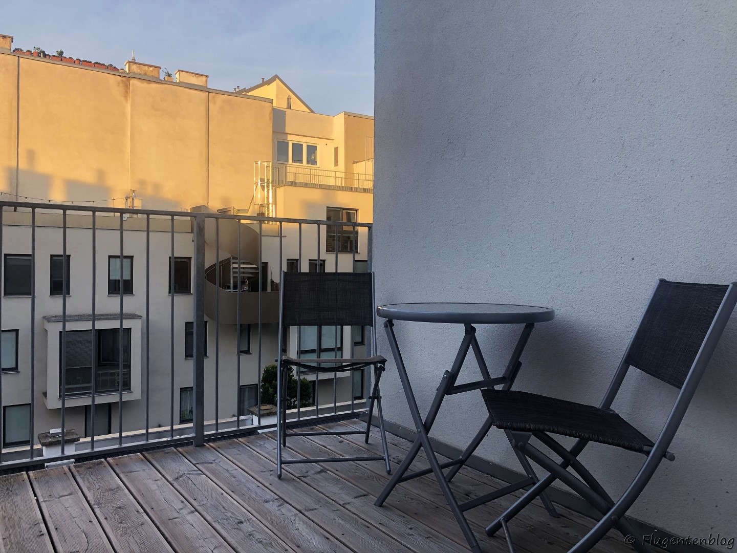 - Auf dem Balkon des Red Monkey Vienna Apartments.