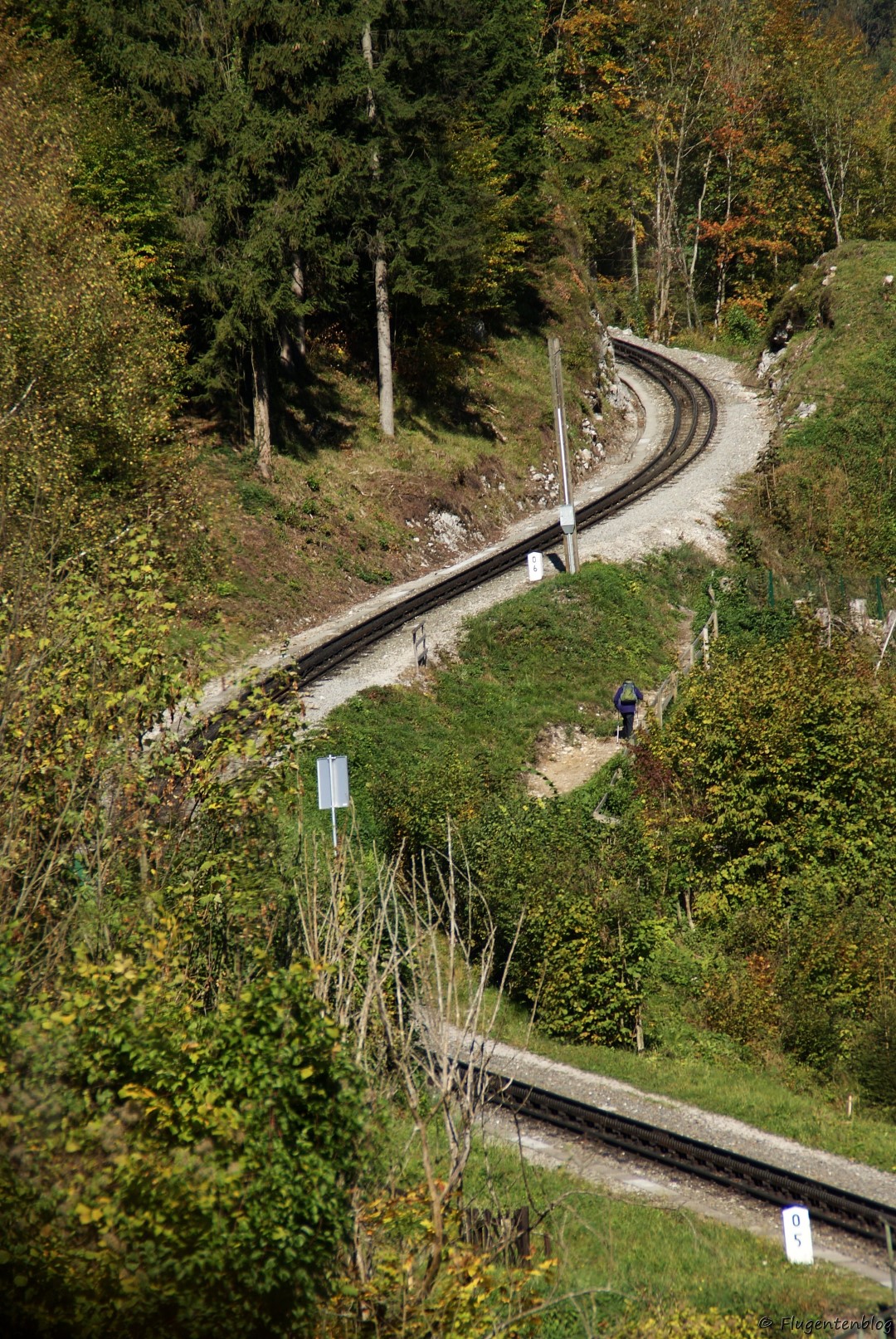 Zu Beginn des 19. Jhdts. wurden die betuchten Herrschaften von den Sesselträgern – ja, das war damals ein eigener Beruf – auf den Schafberg getragen. 1872 gab es erste Pläne für eine Bahn auf den 1.783 m hohen Schafberg, aber erst 1892 konnte dank der 1890 erteilten Konzession mit dem Bau begonnen werden und am 31.7.1893 erreichte der erste Zug die Schafbergspitze. Heute überwindet der Zug auf einer Strecke von 5,85 km in 35 Minuten 1.190 Höhenmeter und schafft dabei eine Steigung bis zu 26 %.