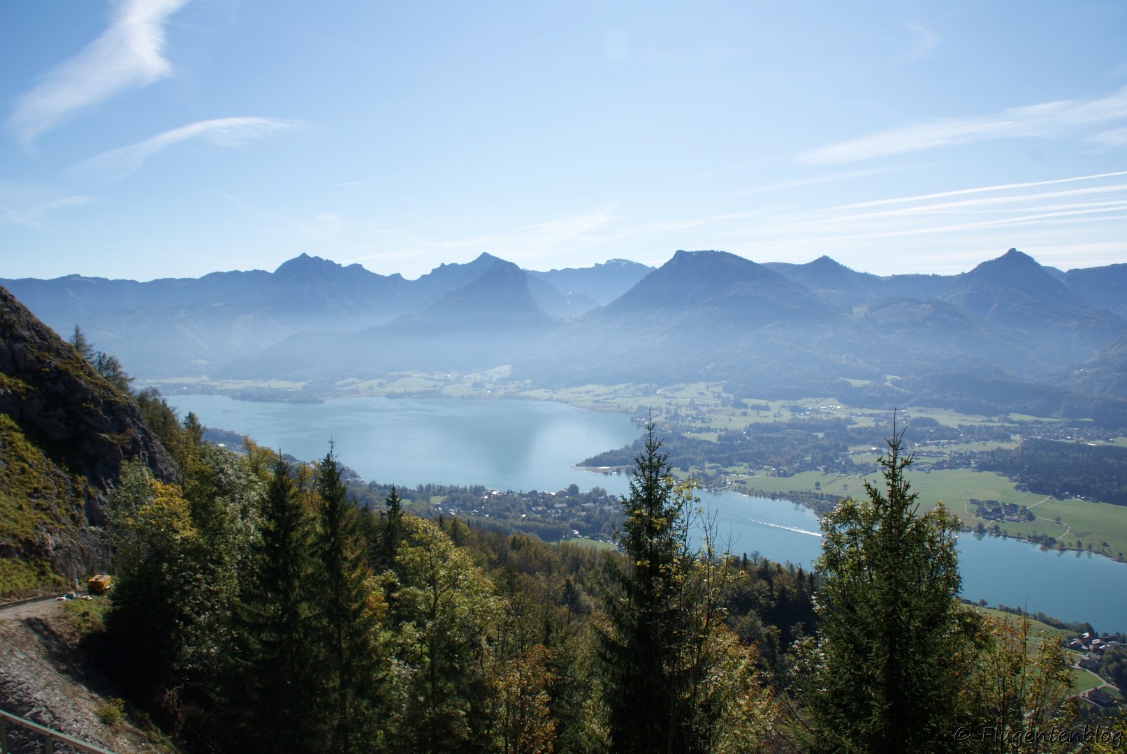 - Blick auf den Wolfgangsee während der Fahrt zur Schafbergspitze.