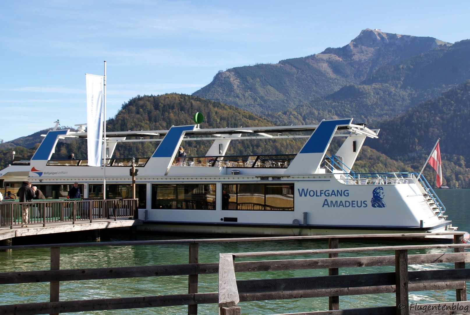 - Die MS Wolfgang Amadeus beim Landeplatz in St. Gilgen.